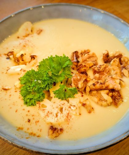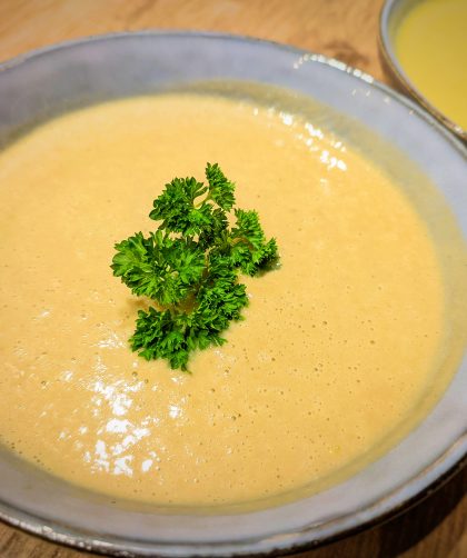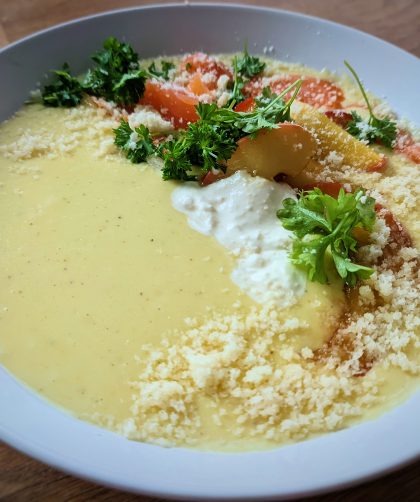Cremige Kartoffelsuppe mit Apfel, Lachs, Meerrettich und verfeinert mit Petersilie sowie Parmesan. Was für ein leckeres und sättigendes Mittag! Rezept folgt bald!