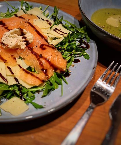 Heute ein kleines Lachs-Carpaccio und dazu eine Zuchinisuppe. Alles angerichtet mit Rucola, Parmesan und Balsamico-Creme sowie Tafel- Meerrettich. ☺️ Ein tolles Abendessen. Ein würziger Tee …