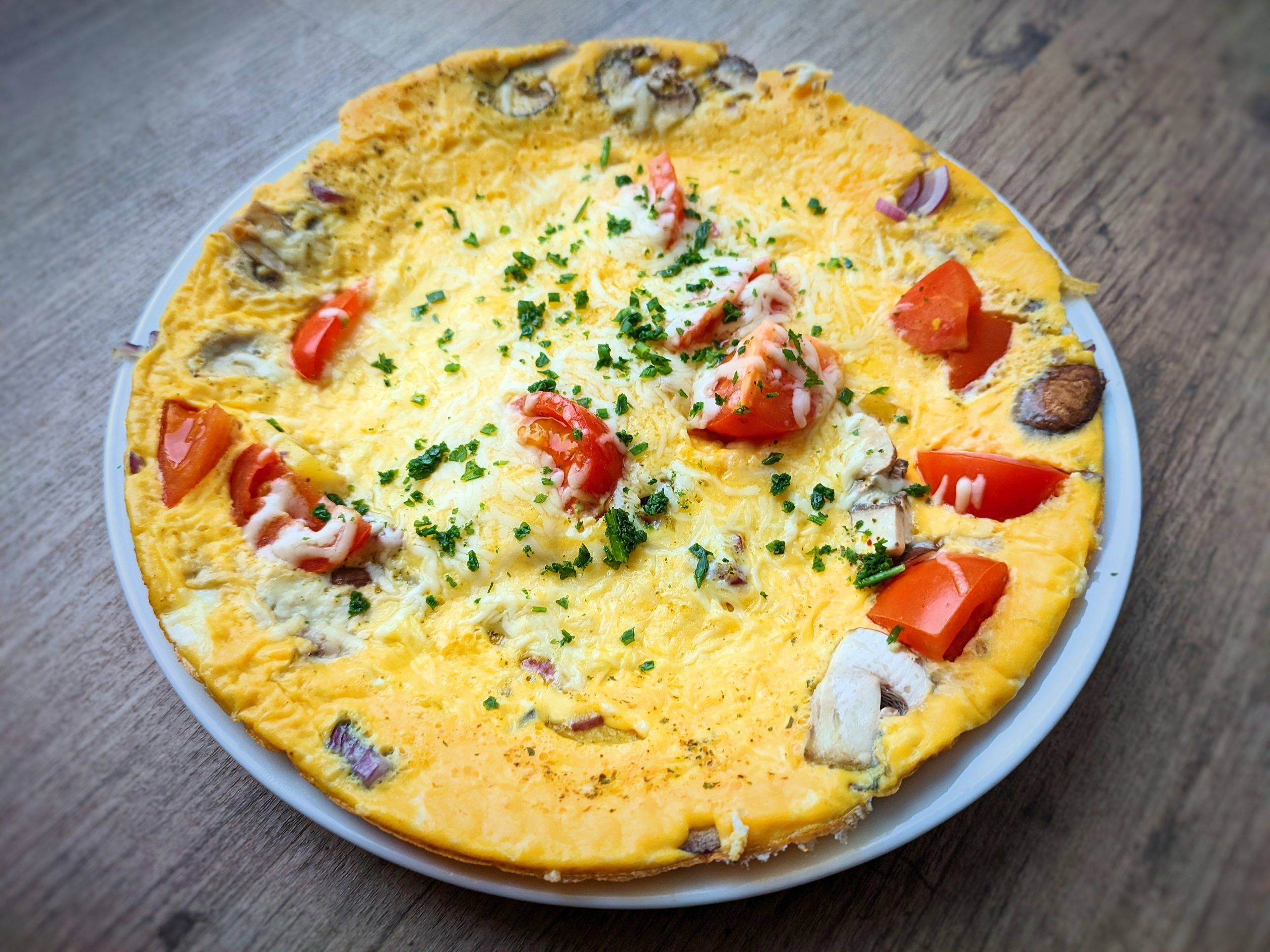 🍅🧀🥚Tomaten-Käseomelette mit Knoblauchpumernickel und Rote Rettich Kresse